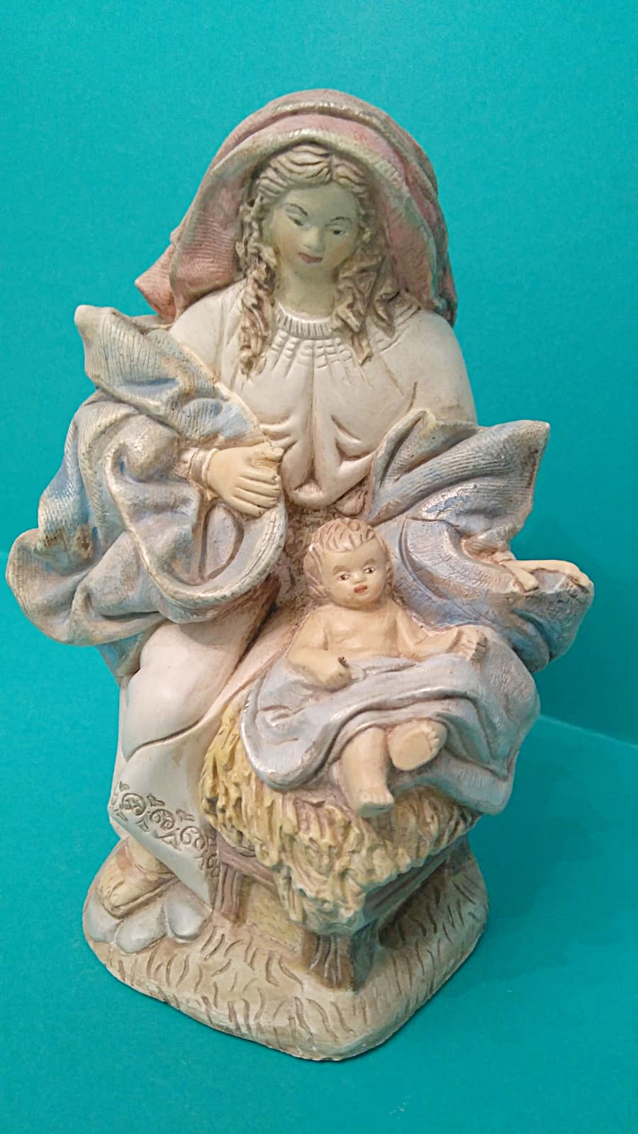 Dimensiones: San José 21,5 cm de alto aproximadamente y Virgen con niño 17,5 cm de alto aproximadamente.