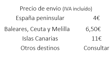 Solo realizamos envíos de forma estándar a la Península Ibérica (España), así como a las Islas Canarias y Baleares y a las ciudades autónomas de Ceuta y Melilla. Para otros países, consultar con nosotros.